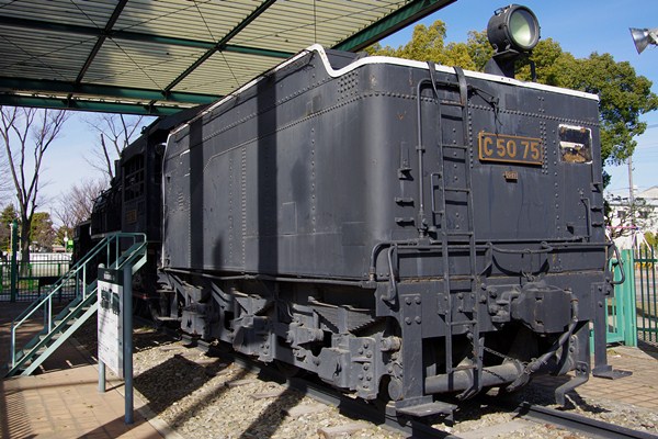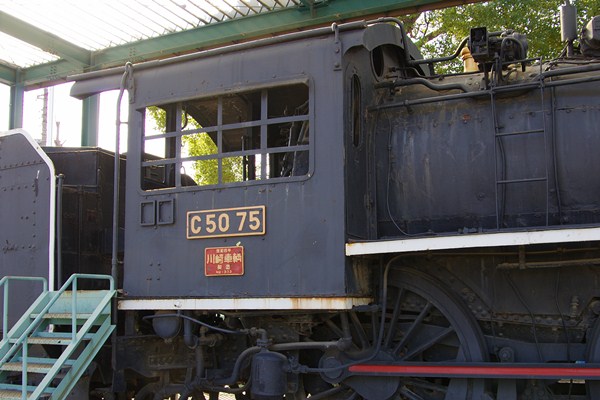 足立区の北鹿浜公園(交通公園)に保存されているC50 75です。小山の123号機とは違い、デフなしです。前照灯のガラスは破損しています。