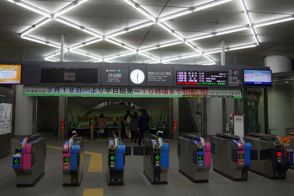 東横線が移転する現副都心線の渋谷駅。平日朝は相当な混雑が予想されるため、一方通行になります。