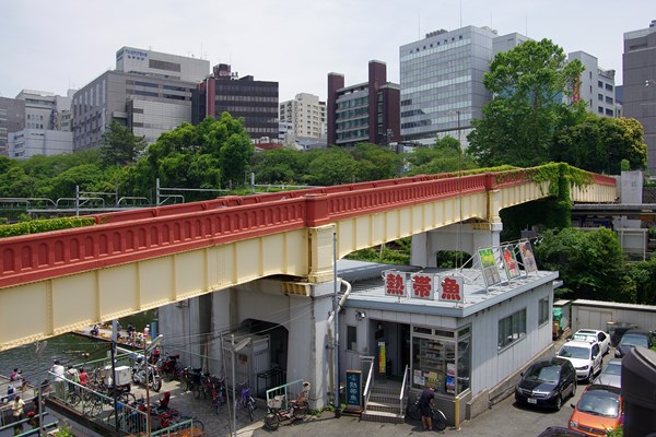 中央線の急行線と緩行線市ヶ谷駅をまたぐ跨線橋「市ヶ谷水管橋」です。