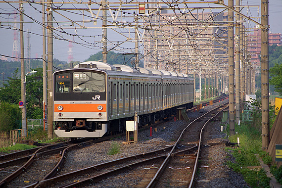 夕陽に照らされ発車する武蔵野線M34編成です。このとき私の頭上では「ハチ?」と思われる害虫駆除をやろうとしていて、私はこの1枚だけ撮って直ちに撤収しました。