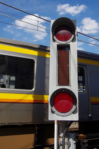 南武線稲田堤駅の近くにある「観光道踏切」の珍しい警報灯です。