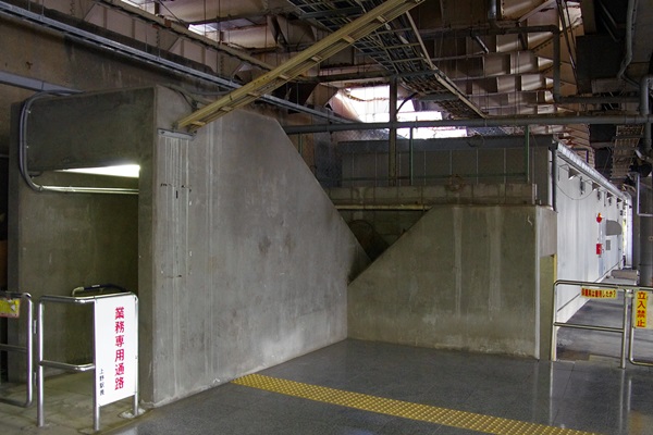 14番線を使うときは業務用通路を利用。この通路は乗務員や駅員、清掃作業員も利用します。