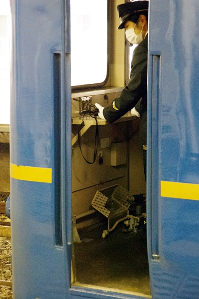 北斗星の推進運転(カニ24 505)。無線機を握り、尾久まで戻ります。