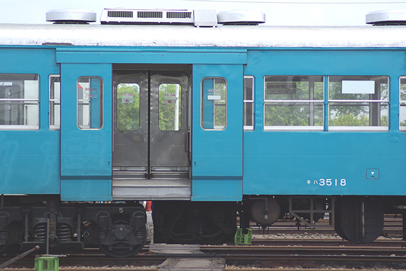 国鉄キハ35, 36 は通勤用の気動車として、両開き外吊りドアが採用されました。戸袋がないので、戸袋に手が引き込まれることはありません。
