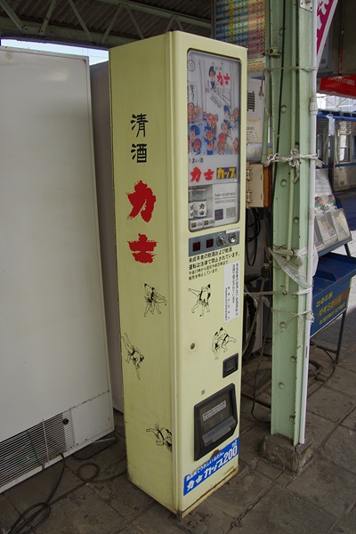 清酒の自販機は一緒に販売するものが無いので幅が狭い。デッドスペースの有効活用にもなるのだろう。しかし、ここの「力士」はただなんとなく置かれている。