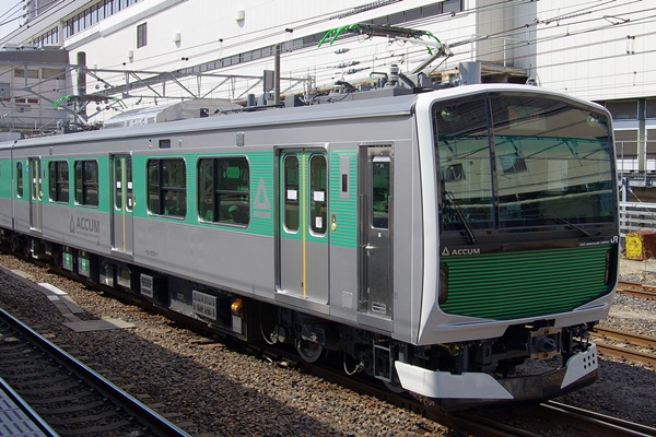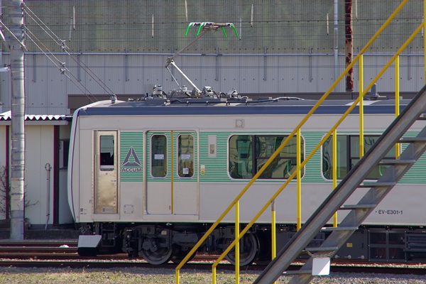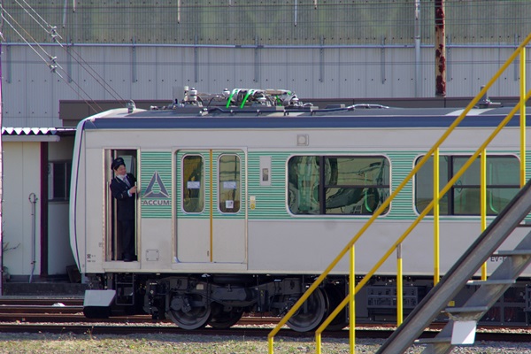 烏山線用の蓄電池電車EV-E301系「ACCUM」V1編成 EV-E301-1です。
