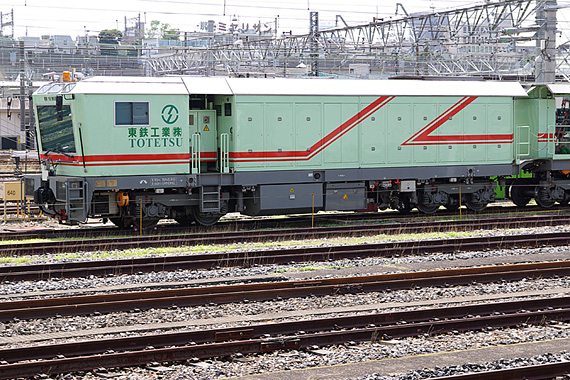 東鉄工業が所有するレール削正車 RR16-M6B です。3両編成の1号車(?)です。