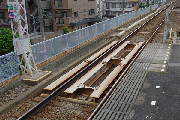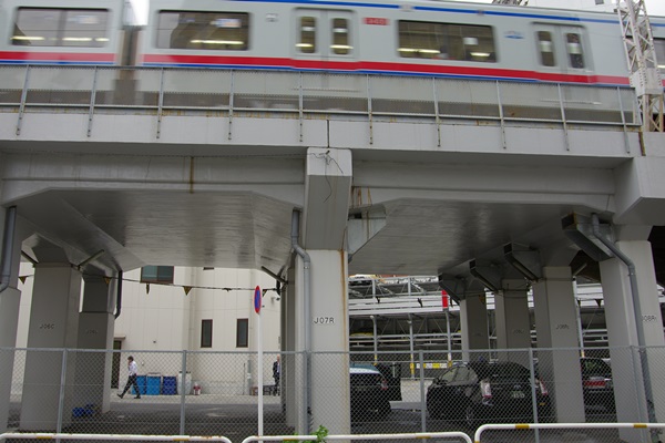 京成の新三河島駅ホームの青砥方は、明治通りを渡る架道橋になっています。名称は「第9号橋梁」です。