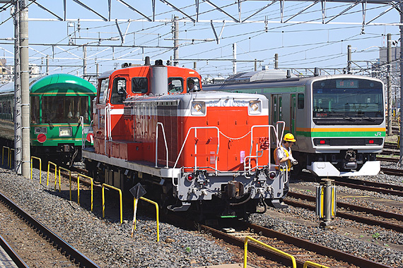 尾久で「夢空間」の入れ替え業務を行う DE10 1098 です。このような入替作業を、ホームからじっくり観察できることが尾久駅の良いところ。