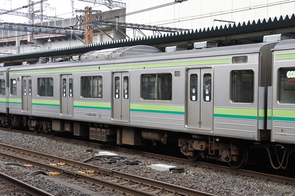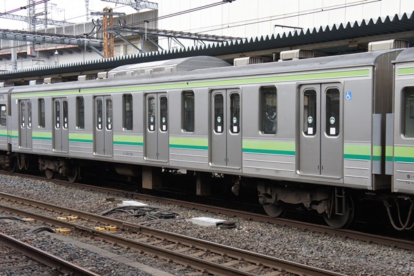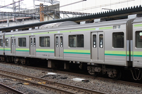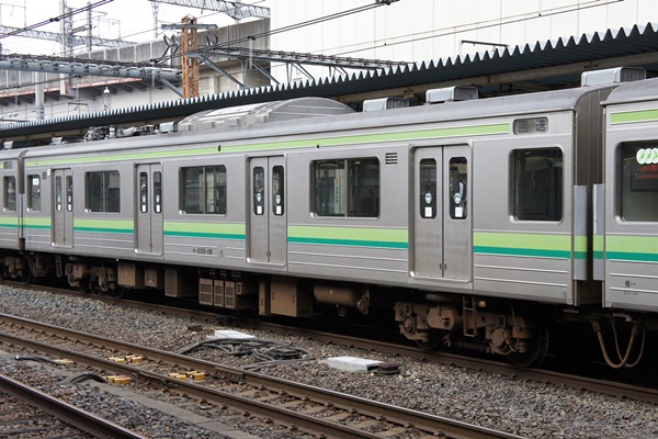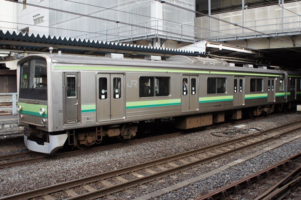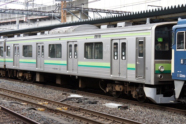牽引されていたのは横浜線用の205系H6編成8両編成です。先頭は8号車のクハ205-66。JRマークが剥がされています。