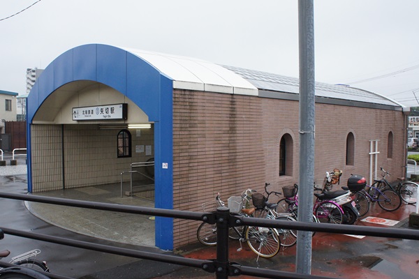 高額運賃で悪名高い北総鉄道の矢切駅。完全地下駅なので、地上にあるのは入口だけです。