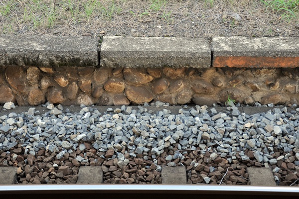 ピーナツをキャラメルで固めたように見える相老駅のプラットホーム。ただし、現役ではない。