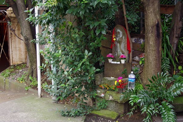 東側入口には延命地蔵が祭られています。