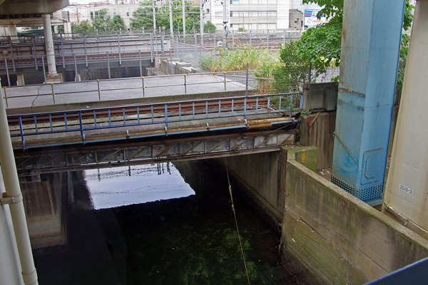 港町架道橋は東京湾に繋がる運河と平行に設置されており、前述の新浜橋はこの運河を渡るための橋梁になっています。