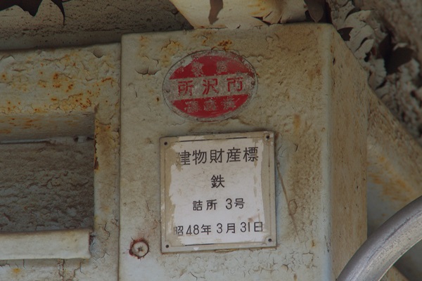 建物財産標。所沢市の家屋調査済プレートも付いています。