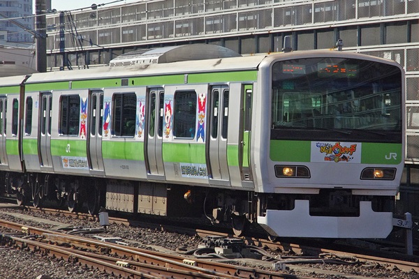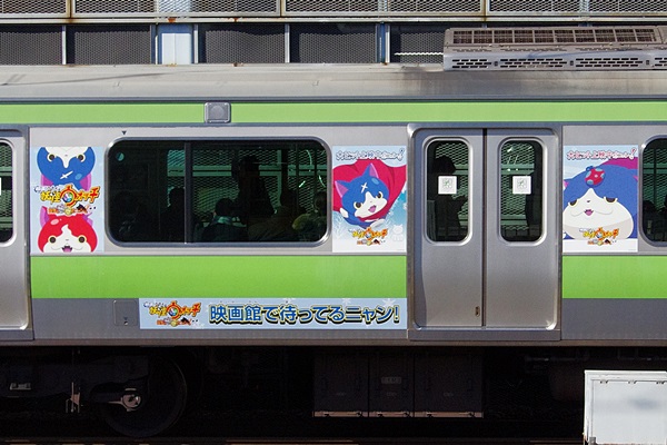 山手線E231系552編成 「映画妖怪ウォッチ 誕生の秘密だニャン!」ラッピング広告車、ヘッドマーク付きです。