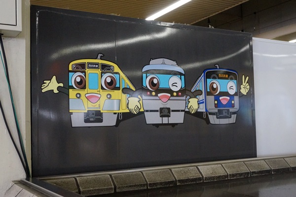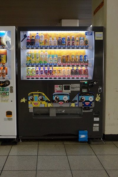 9000系, 10000系, 20000系の「顔」がラッピングされた自販機です。