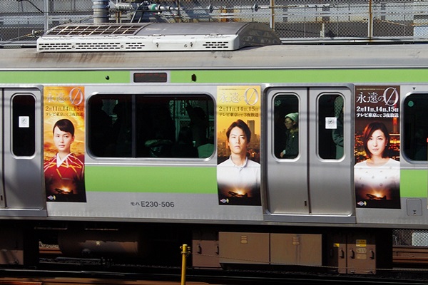 山手線502編成を使った、テレビ東京「永遠の0」ラッピング広告車です。
