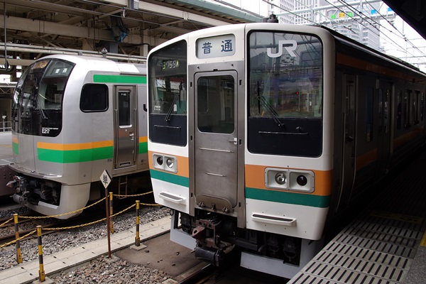 E217系と並ぶ湘南色の頃の同車。