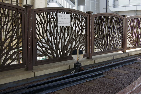 田端ふれあい橋に展示されている東北線で使用されていた40Kレールとポイントリバーです。