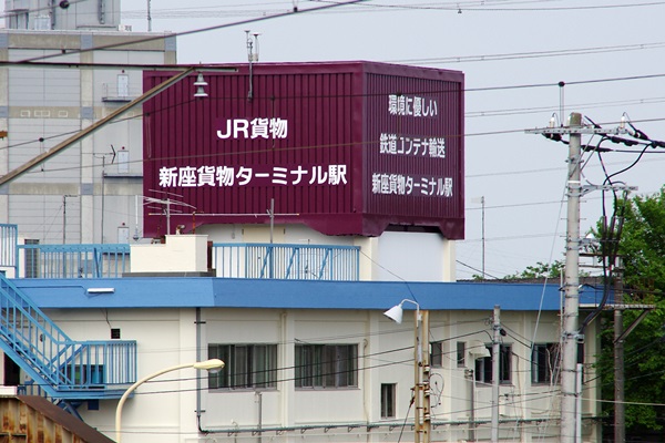 新座貨物ターミナル駅のコンテナ形看板です。以前は水色でした。