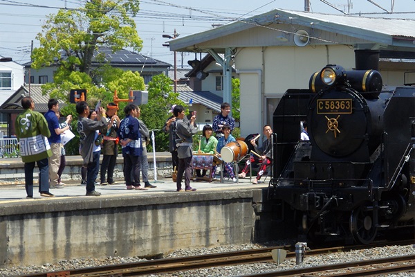 寄居駅に入る秩父鉄道SLパレオエクスプレスC58 363です。この日は祭り囃子の出迎え付きです。