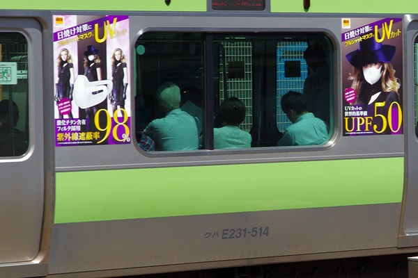 山手線514編成 日本バイリーン「フルシャットマスクUVカット」ラッピング広告車です。不思議な雰囲気です。