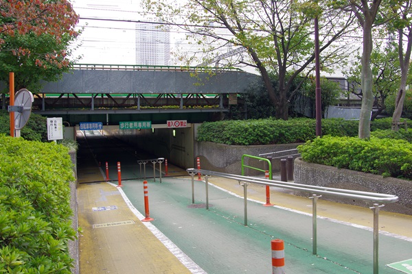 東海道本線新橋-品川間にある雑魚場架道橋。下の道路は歩行者・自転車専用です。
