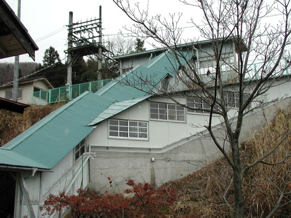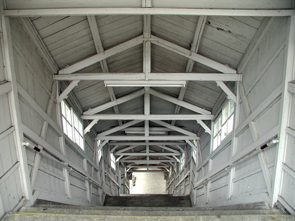 外から見るとこんな感じで、駅舎よりも高いところにホームがあり、上りホームは地下道をくぐって行くことになります。