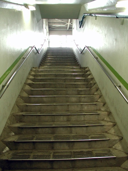実は白線に沿っていけば、上りホームに出られるという誘導ラインでした。左の階段は下りホーム、右が上りホームへと続きます。