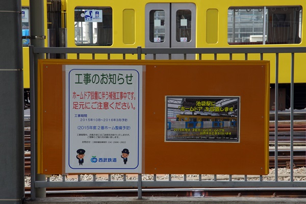 西武池袋駅のホームドア設置工事・ホーム補強工事の告知ポスターです。