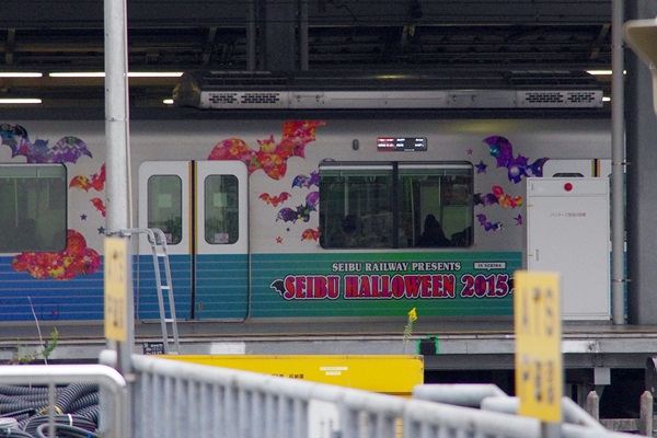 ハロウィンが終わってそろそろひと月が経つ、西武30000系30101F「SEIBU HALLOWEEN 2015 IN NERIMA」ラッピング広告車です。JRの池袋駅から、西武の池袋駅構内を撮ったので写りが悪いです。