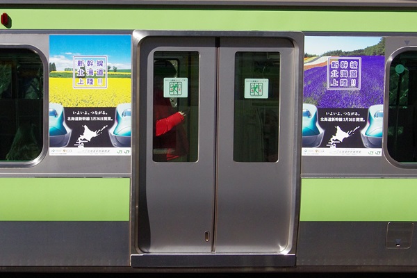 山手線E231系トウ535編成「新幹線北海道上陸!」ラッピング広告車です。
