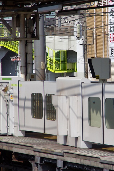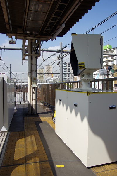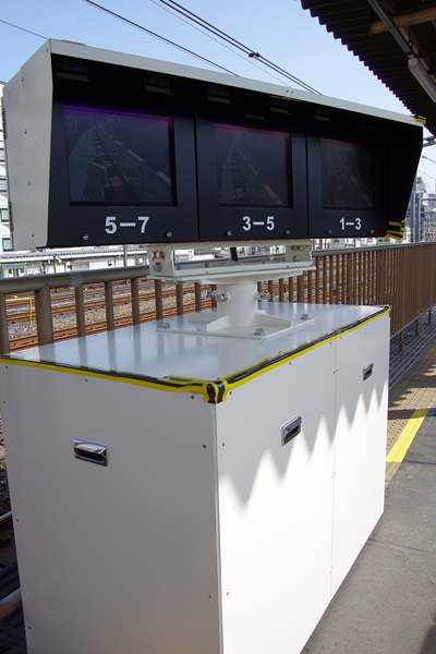 こんな感じで、京浜東北線側の黄色い点字ブロックの上に、土台が載っています。