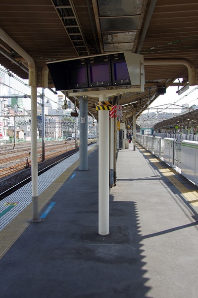 鶯谷駅の山手線外回りホームの「ホーム監視テレビ(モニタ)」が随分下に移設されました。