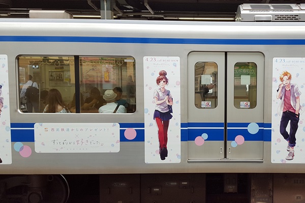 西武20000系「西武鉄道からのプレゼント×ずっと前から好きでした」ラッピング広告車です。