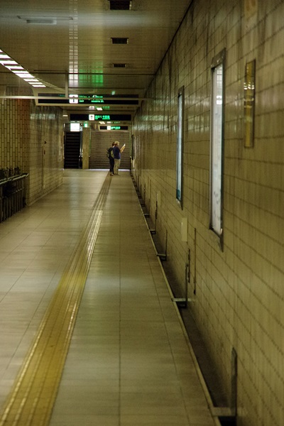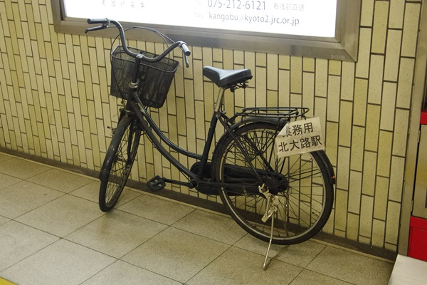 地下通路に置かれている業務用自転車! 自転車が必要なほどは長くないですが。