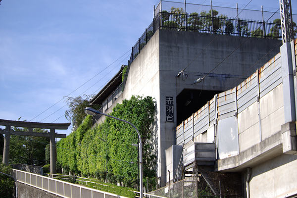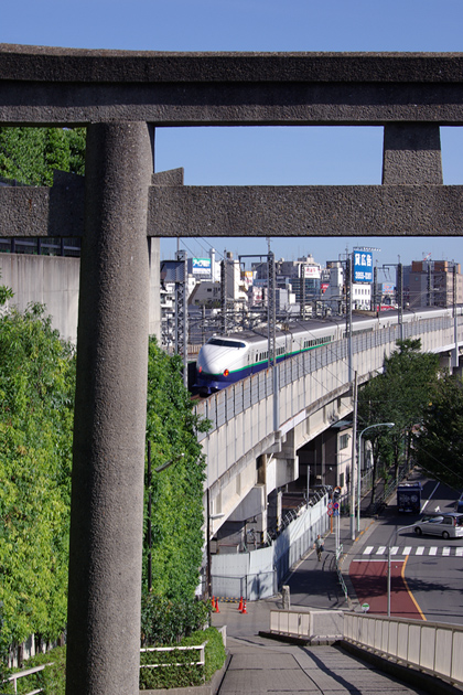 上野駅地下ホームから地上に出て、最初に通り抜ける赤羽台トンネルはご覧の通り神社の下です。埼京線もこのトンネルを通ります。構造的にはトンネルポータルのコンクリートの上に社務所が建っている感じです。