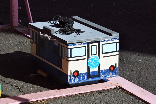 青梅鉄道公園にある「EF65 1000番台」タイプの道具箱です。富士・はやぶさのヘッドマークを付けています。機関車に形式プレートはありません。