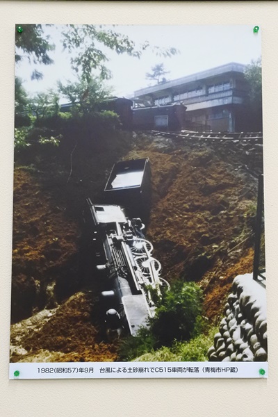 青梅鉄道公園で展示されている「台風による土砂崩れでC51 5車両が転落」の写真(青梅市HP蔵)です。