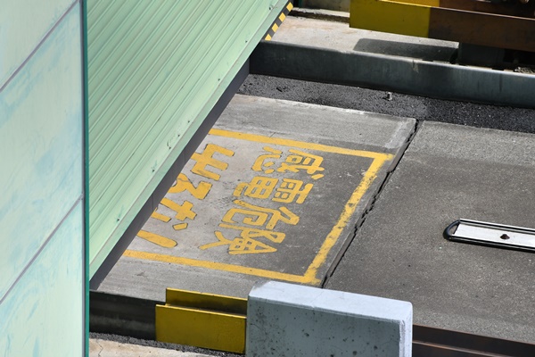 三相交流を車輪横から集電する形なので、車庫の出口には、「感電危険 出るな!」の注意書きがあります。