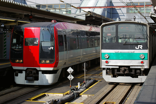 JRの成田空港行特急「成田エクスプレス」のクロ253-5 です。右は埼京線クハ205-107。