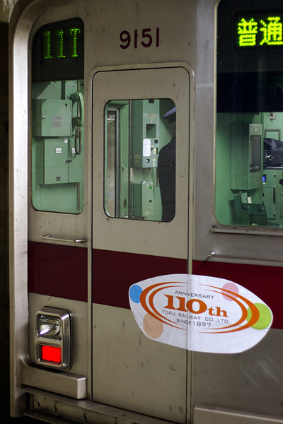 東武鉄道は今年110周年。有楽町線直通の東上線車両1編成が「110周年記念トレイン」として走っています。ヘッドマークはこういうシールが貼られているだけ。