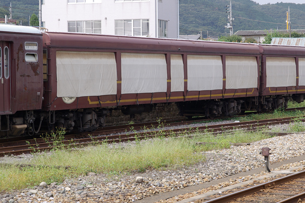 わたらせ渓谷鐵道の夏季イベント用トロッコ列車のトロッコ部分に使われている車両です。窓がないので使わないときはシートが掛けられています。種車は電車(京王5000形)です。