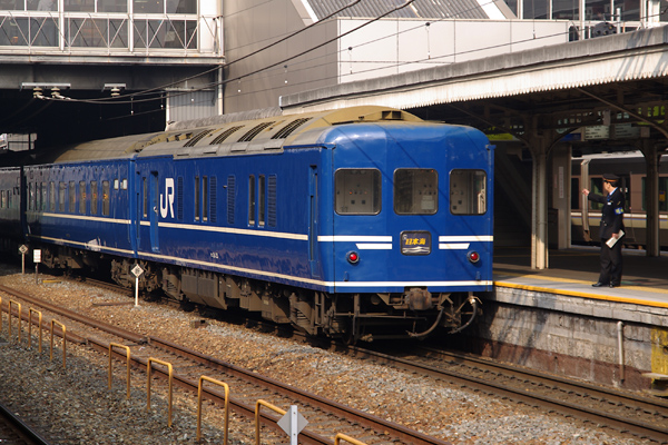 終点京都に到着した寝台特急なは(京都-熊本)・あかつき(京都-鳥栖)です。3月15日、ついに関西-九州間のブルートレインが消滅します。