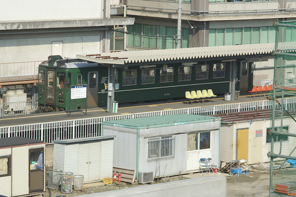 北近畿タンゴ鉄道(第三セクター)のMF102 です。MFとは旧社名「宮福鉄道」の頭文字です。JRの特急に乗っていたら見えたので窓越しに撮影しました。わたらせ渓谷鐵道の わ89-300形のデザインとよく似ています。