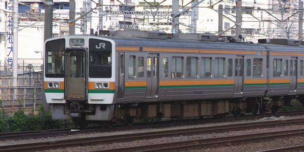 JR東日本のクモハ211-1007。正面の窓は小型、冷房は集中式です。