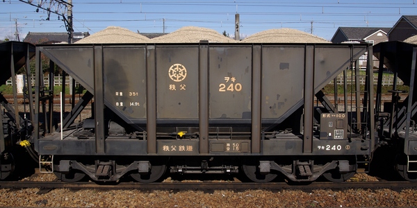 ヲキ100形には汽車製のほか川崎重工製のものもあります。その川崎重工製ヲキ240。これには側面柱のリベットがありません。