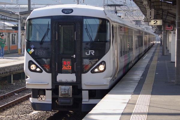 高尾駅を通過する正真正銘「急行アルプス」です。車両はクハE257-109。