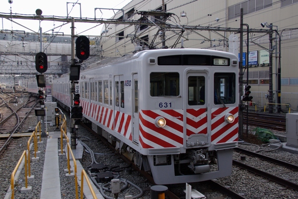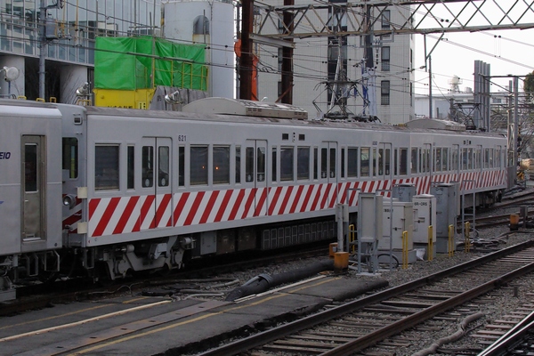 デワ601。これは中間車デハ6107に先頭車クハ6707の運転台をくっつけた改造車です。京王八王子寄りにも簡易運転台があります。